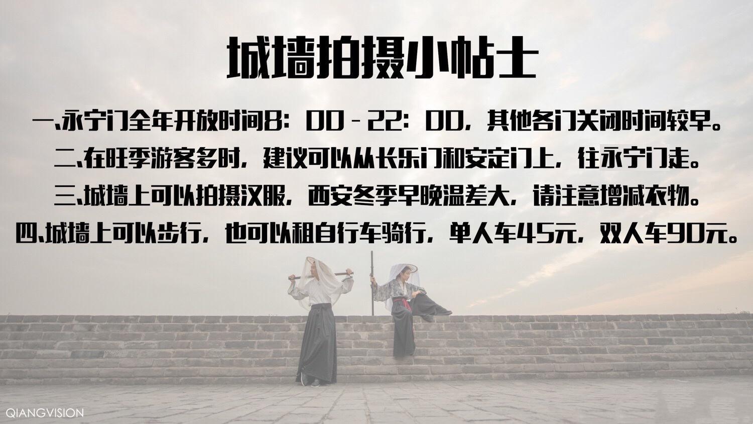 玩法推荐:1、古城墙围住了整个西安老城区,如果要逛完需要很多时间,可以选择租自行车,45元/天,当然古城上面也很适合摆拍。
