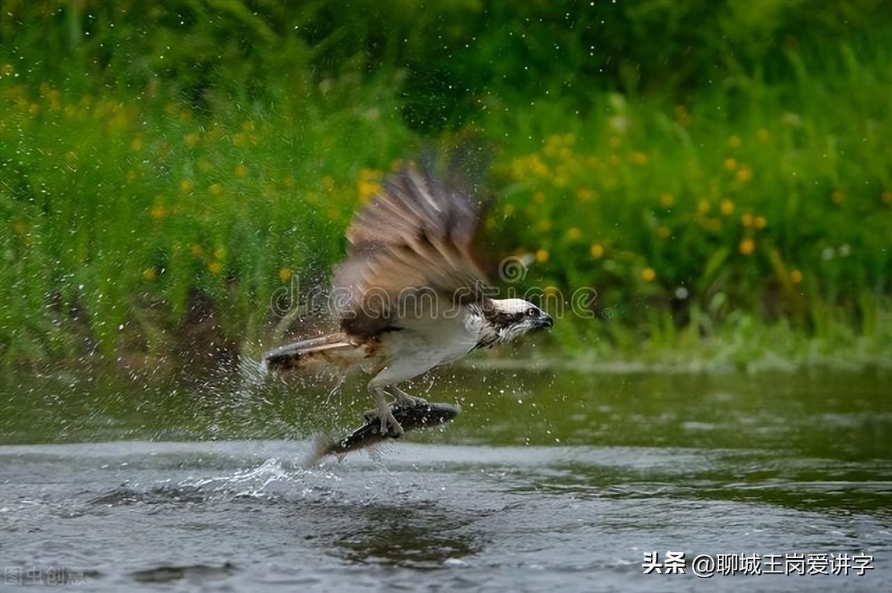 雎jū,左边是而且的“且”,但在这里“且”也读作jū,是持续加力,持续助力的意思。右边的“隹”指的是鸟。合在一起,雎jū的本意为特别有力量的鸟,特指是鱼鹰。