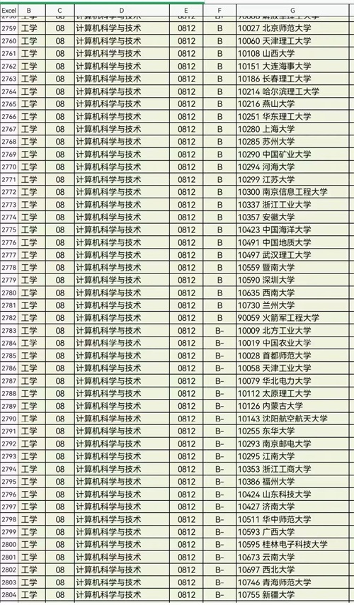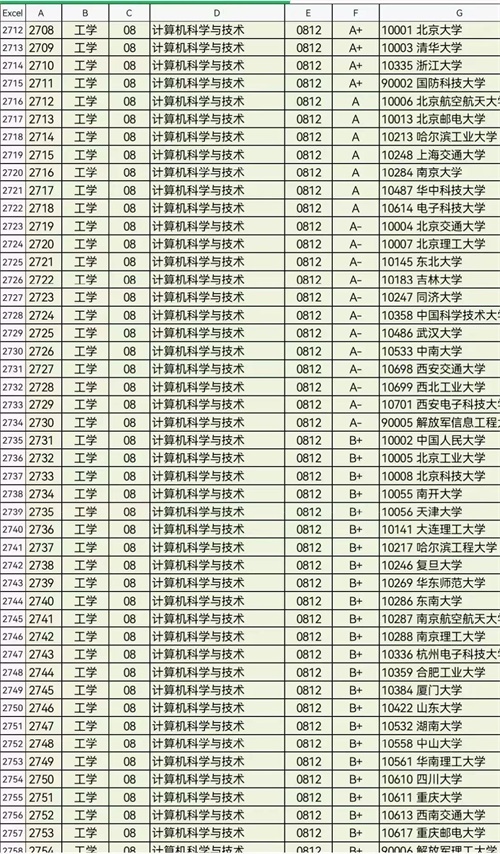 我们看一下计算机科学与技术专业学科评估情况: