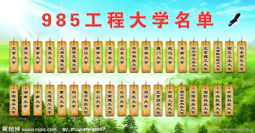 同济大学,中国科学技术大学,武汉大学,东北大学,吉林大学,北京理工大学,中南大学,西安交通大学,西北工业大学等985高校
