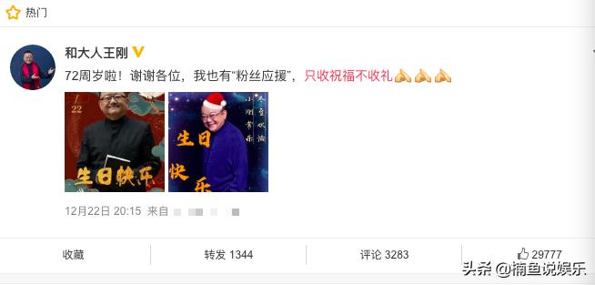 最近也就是12月22号,看似是一个普通的日子,其实是王刚老师的72岁生日,这一天在社交平台上祝福自己生日快乐,还直言自己只收祝福不收礼,同时附上了自己近期的照片。