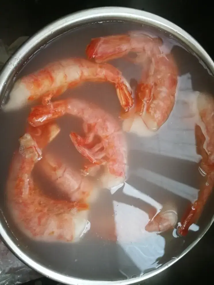 我这里只能买到冷冻的去头红虾,取出化冻(你们能买到新鲜的那最好了)