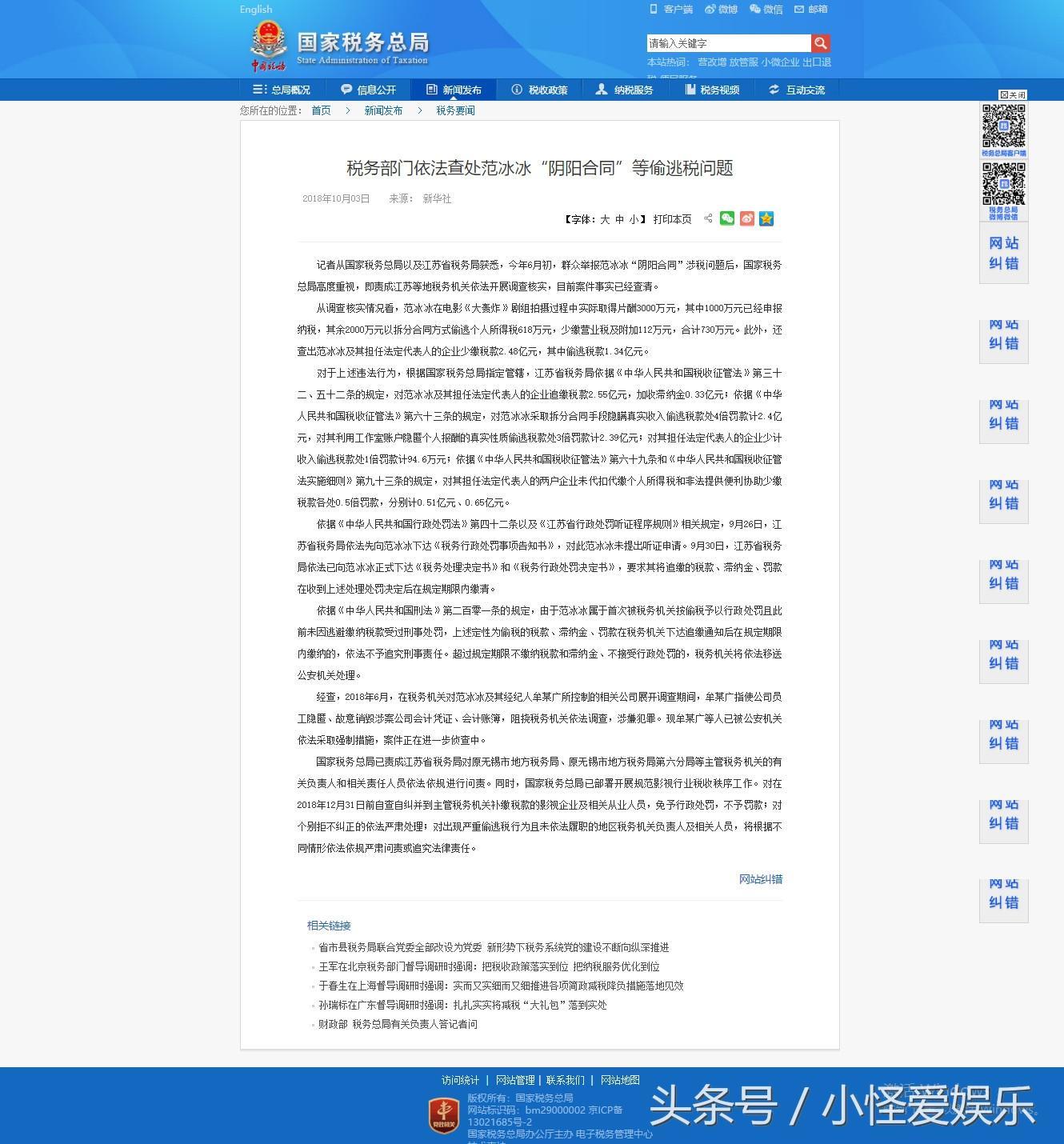 “阴阳合同”,“天价片酬”,针对如此敏感的娱乐圈事件,加上网友们呼吁彻查娱乐圈的呼声越来越高。6月3日,国家税务部门终于出手,国家税务总局表示,针对网上反映有关影视从业人员签订“阴阳合同”中的涉税问题,已责成江苏等地税务机关依法开展调查核实。如发现违反税收法律法规行为,将严格依法处理。直至10月3日,国家税务局再次发文称,案件事实已经查清。详情大家戳图片。