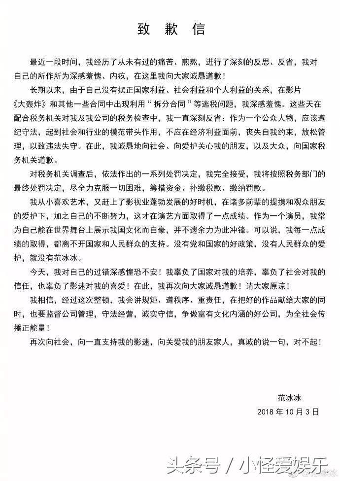 从税务局给出的数据,我们可以看到,此次追缴范冰冰的税金高达8.84亿人民币!而与此同时,范冰冰本人也是在个人微博上发表了一篇忏悔文。详细内容,大家请戳