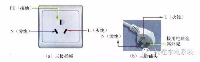由图可见,三极插座下方的两孔分别接火线和零线,上方的另一个孔一与大地相接。
