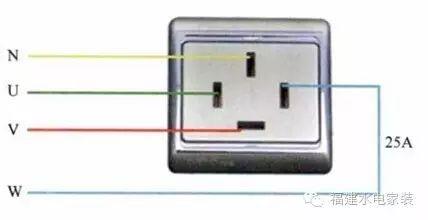 四极插孔别名三相四线插座,属于三相电被称为动力电,380)的3条相线(U. V. W)加上一条零N线。