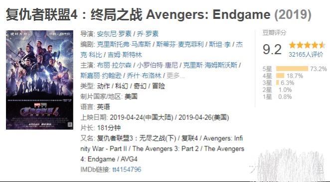 泪目!《复仇者联盟4》第一波评分出炉,9.2分,全场掌声很给力