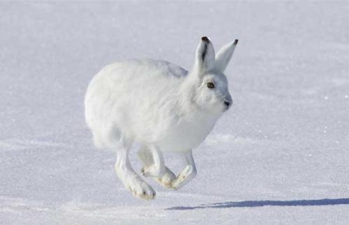 雪兔生活在温带的森林、平原上,属夜行性动物,胆小怕惊,耐寒怕热,喜干怕湿,喜啃咬木头和洗浴,是中国九种野兔中尾巴最短的。雪兔为了适应冬季严寒的雪地生活环境,冬天毛色变白,直到毛的根部;耳尖和眼圈黑褐色;前后脚掌淡黄色;夏天毛色变深,多呈赤褐色,是中国唯一冬毛变白的野兔。