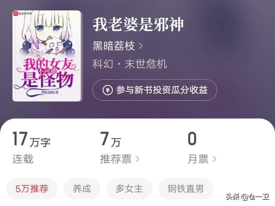 目测来看,大神作家黑暗荔枝的《我老婆是邪神》有很大可能是本周上架的榜首。