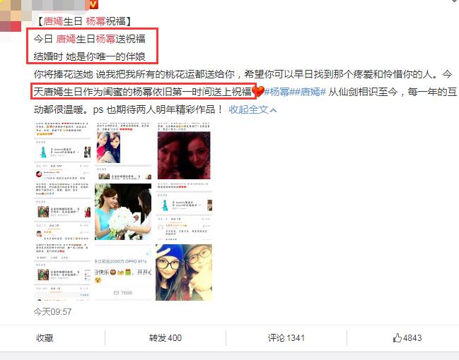 杨幂这样祝唐嫣生日快乐,被网友怀疑她们真的友尽!