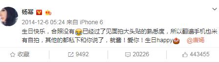 事实证明,浸淫娱乐圈多年,深谙舆论走向的杨幂,还是聪明又机智,今天真的发了微博祝福唐嫣了,