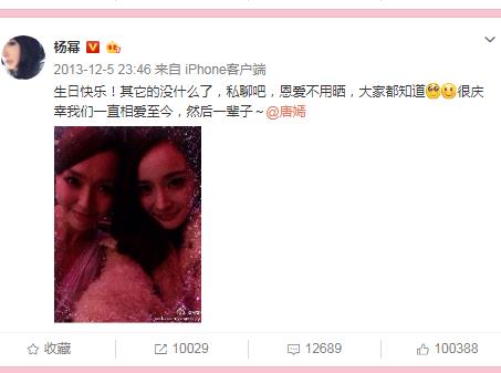 其实说来还真是挺奇妙的,不管真相如何,单看杨幂每年给唐嫣送生日祝福的文字,就会觉得有趣。