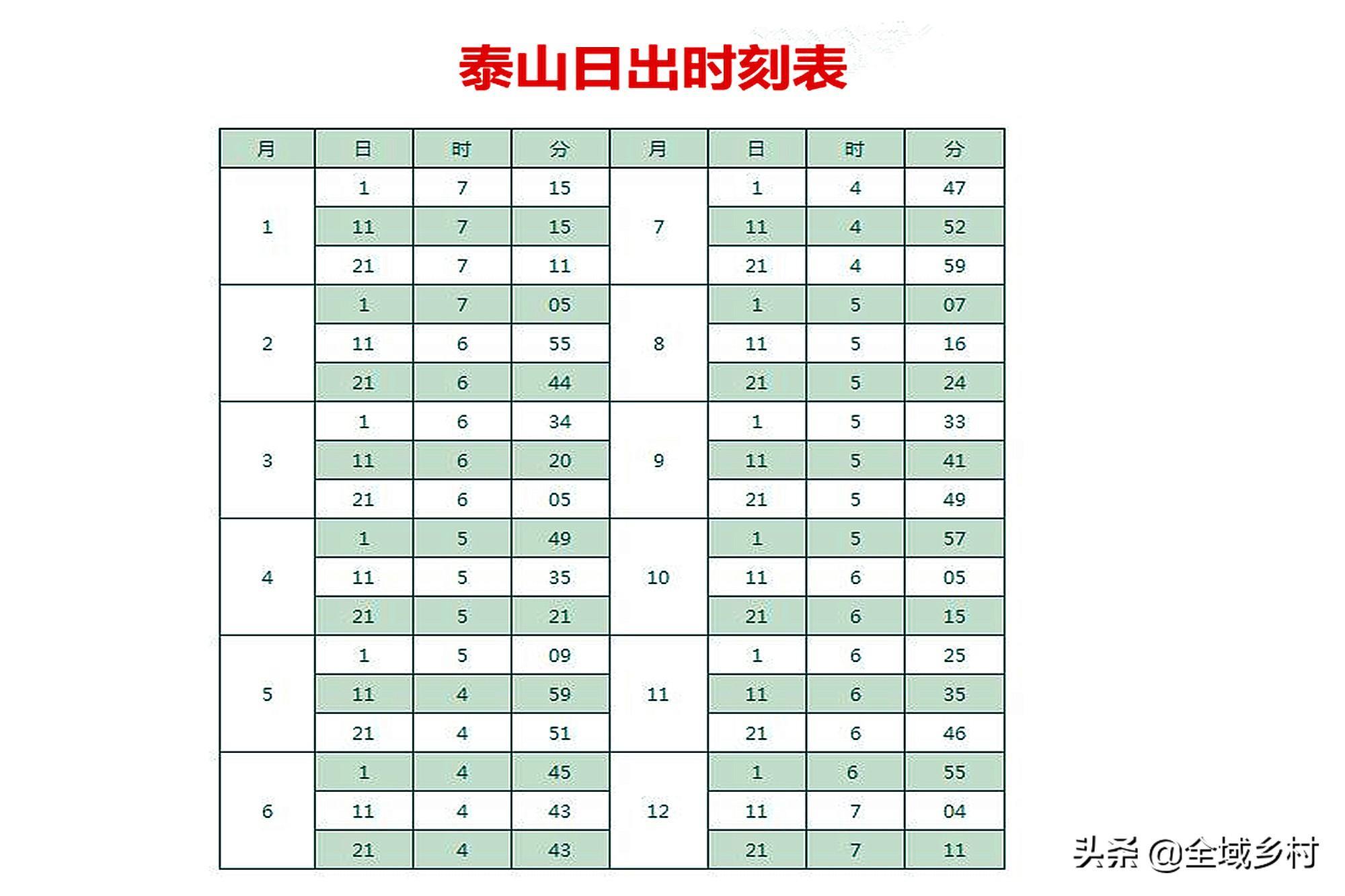 具体的泰山日出时刻表,在泰山景区的官网上可以直接查看,以旬为单位,公布每月的日出时刻,方便游客提前安排行程,在最合适的时间欣赏美丽、壮观的泰山日出。