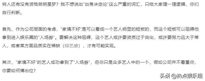 “家贫”成出道障碍?娱乐圈资本“万能”?偶像公司老总爆行业“内幕”:不敢轻选穷人偶像公司老总爆行业“内幕”:行业不敢轻选穷人,缺钱存在“道德风险”!