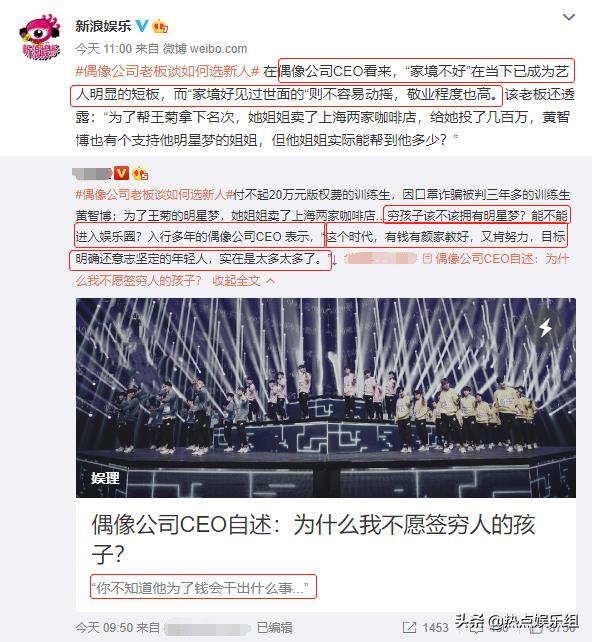 穷人缺少做明星的资格?娱乐媒体放出偶像公司老总言论引热议