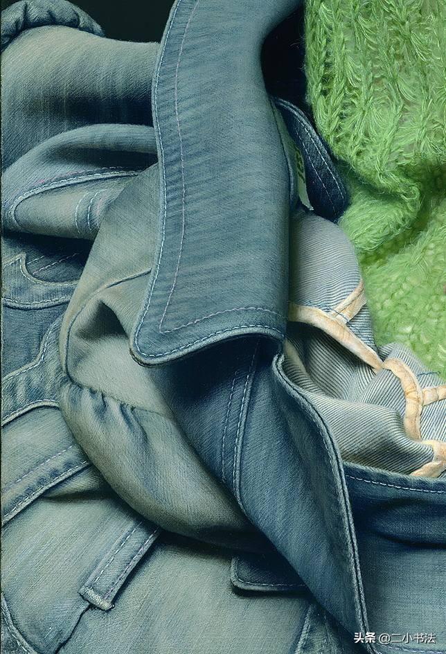 哇塞!这哪里是油画,这就是真的人在呢面前站着,如果不说这是画的很难分辨其本根。我们看画中人物身上的毛衣,这就是实物放在我们面前;再透过毛衣的空隙来看人物的皮肤,这就是真人也不过如此。不由得让人惊叹——冷军神来之笔。